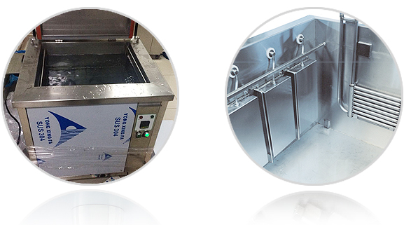 超聲波清洗槽一般采用SUS304不銹鋼手工弧焊而成,適用于普通弱酸堿性清洗液,對于有特殊要求的清洗液可以選擇使用SUS316L或者鈦板等材質(zhì).